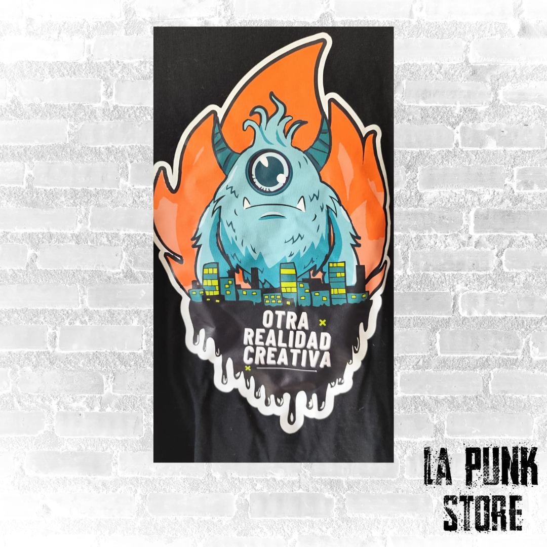 Playera color negro con estampado al frente del medio de difusión OTRA REALIDAD CREATIVA