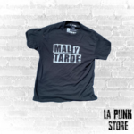 Playera negra de Mal y Tarde con estampado blanco | Producto original de La PunkStore | por un precio extra puedes personalizar la playera |
