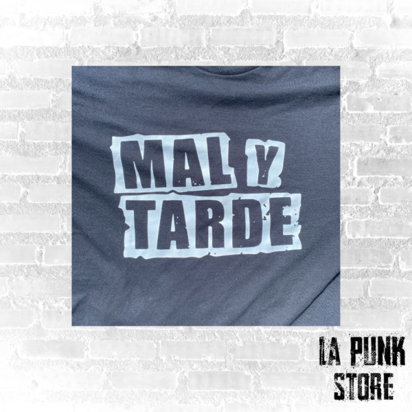 Playera negra de Mal y Tarde con estampado blanco | Producto original de La PunkStore | por un precio extra puedes personalizar la playera |